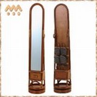 サンフラワーラタン ラタン360度回転式玄関ミラー スリッパラック付き R467HR ブラウン W33×D33×H155 代引不可