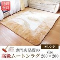マット ムートンラグ 高級スプリングラムスキンのムートンカーペット オレンジ200×200 家具 インテリア
